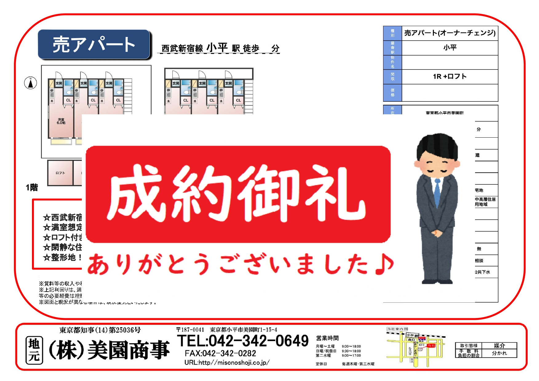 小平の不動産|(株)美園商事 > 株式会社美園商事のスタッフブログ一覧 > 【成約済み】小平市美園町 売アパート