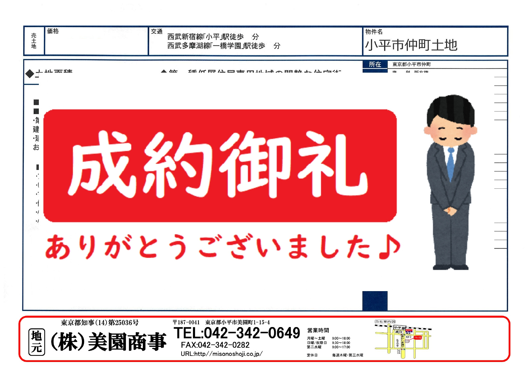 【成約済み】小平市仲町 土地|小平の不動産|(株)美園商事