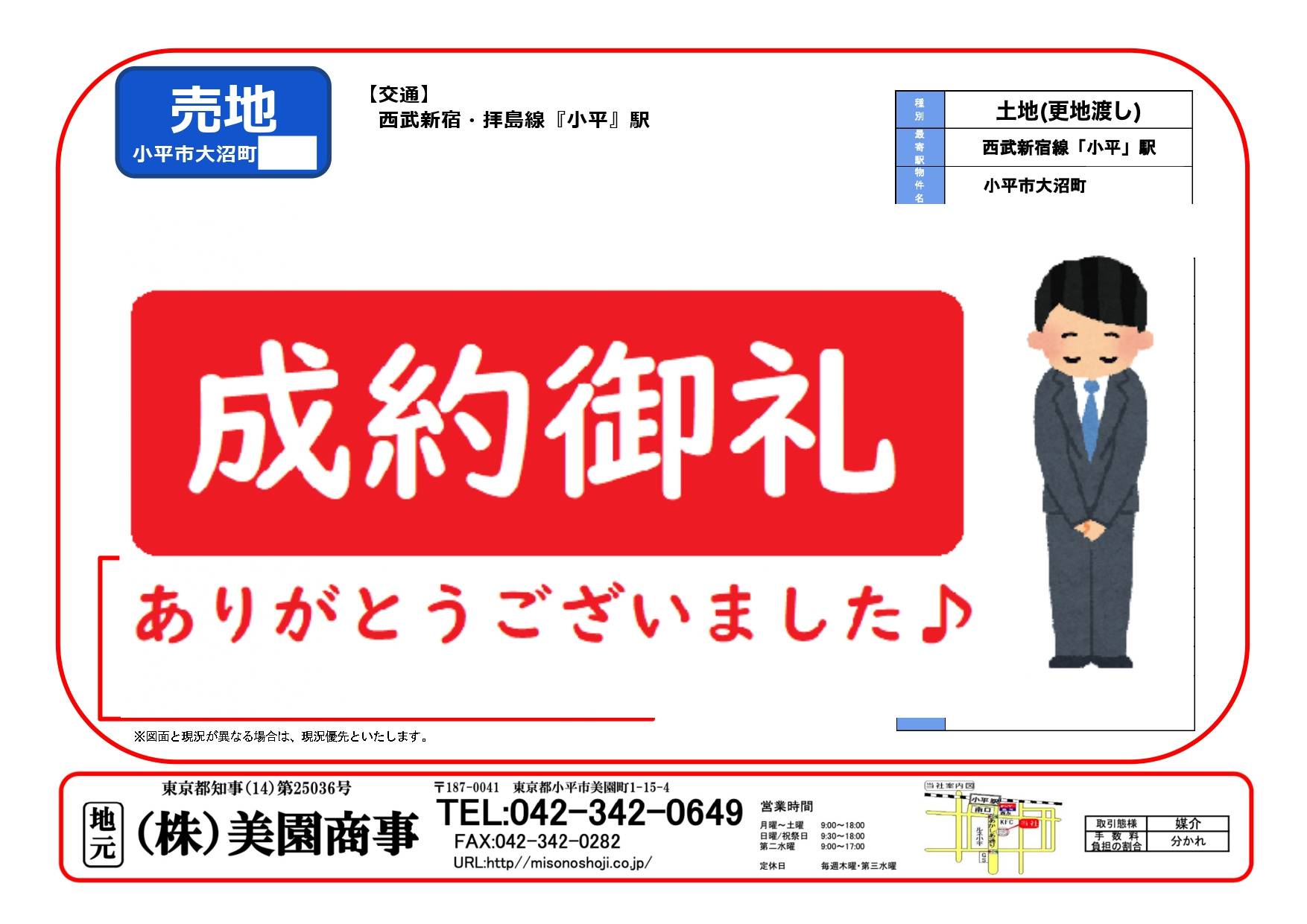 【成約済み】小平市大沼町2丁目 土地|小平の不動産|(株)美園商事